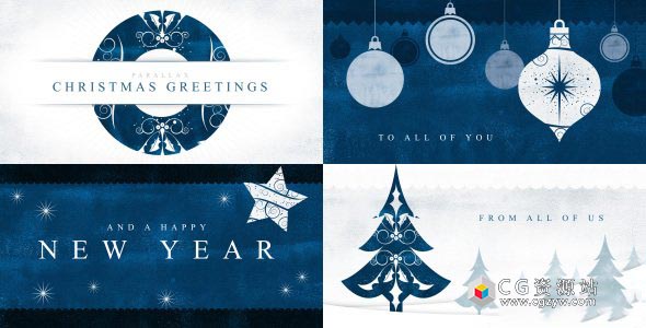 模板信息:蓝色卡片,庆祝圣诞节,优雅,平,祝福,圣诞快乐,新年开门红,消息,视差、纹理,白色圣诞
