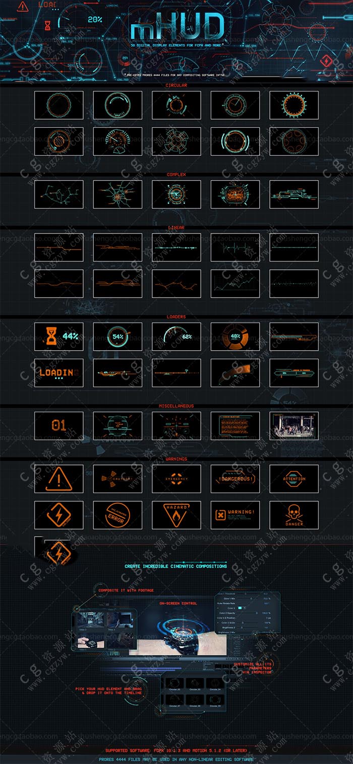 FCPX插件版本:一共50组高科技感动态元素,可以修改所有元素的颜色,位置,大小,角度等多种参数,支持FCPX 10.1.3或者更高版本(10.1.3以下的旧版本均无法使用)插件能制作模拟出很多具有科技感的画面,带alpha透明通道,能很好的和视频结合完成特效动画,安装简单,在FCPX字幕插件里即可找到。
