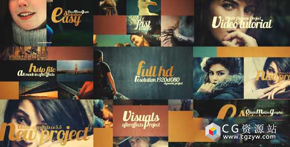 AE模板-简洁时尚图片推拉切换宣传片展示 Easy Slideshow 免费下载