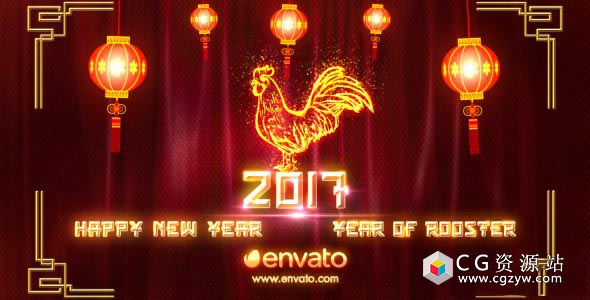 AE模板-2017鸡年新年快乐片头金色路径描边动画 Chinese New Year 2017 免费下载