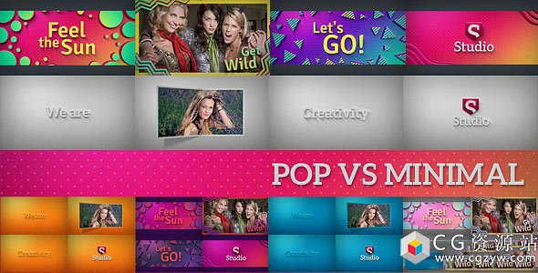 AE模板-电视节目预告时尚折叠图片视频片头开场 Pop Vs Minimal Fast Slideshow Pack 免费下载