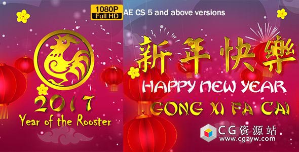 AE模板-2017春节金色标题灯笼鸡年新年快乐片头动画 Chinese New Year Wish 2017 AE工程