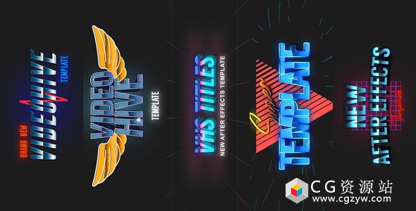AE模板-5组怀旧风格动画游戏文字标题开场5 VHS Title Opener Pack 2 免费下载