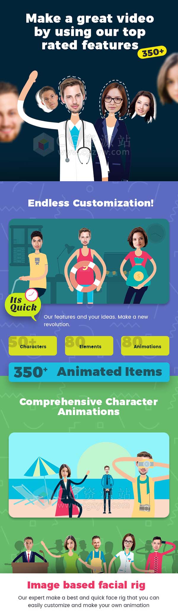直接将自己的头像导入即可完成替换,头像都是绑定好的,多种服装搭配可以选择,也可以导入自己的服装