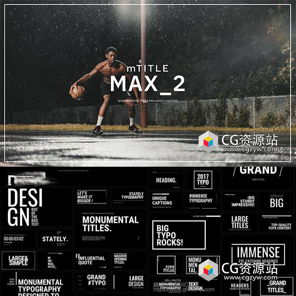 FCPX插件-60组大字片头纪录片文字标题字幕条动画预设 mTitle MAX(1 + 2)