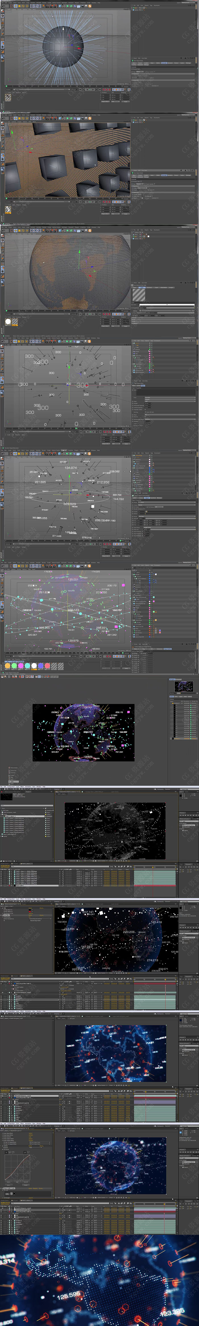 C4D和AE创建一个未来高科技全息粒子地球旋转动画特效制作教程