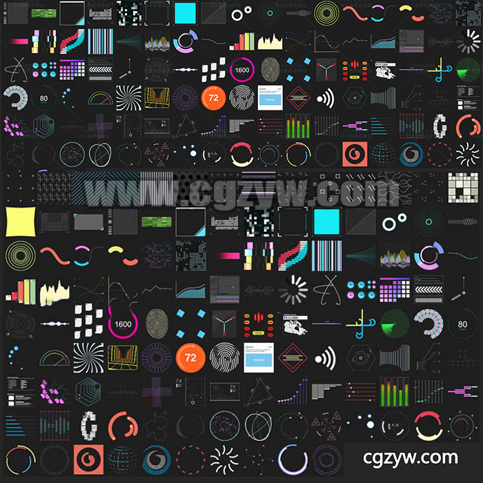 包含122种独立的HUD元素,所有的元素都由AE制作完成,可以修改长宽,间距,颜色等属性。是制作HUD类型的MG动画好助手,可在脚本中直观的看到脚本元素样式,方便选择使用